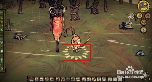 插在地面上的战旗不克不及修补,拿起背包中的缝纫包放在战旗上,点鼠标右键恢复经久度。