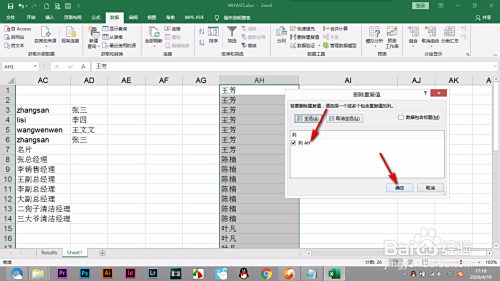 2.将这一列选中,点击数据选项卡下方的——删除反复值按钮。