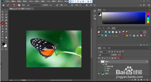 选择画笔东西,设置画笔巨细为10,硬度为100%,图层填充为5%,相关设置如下: