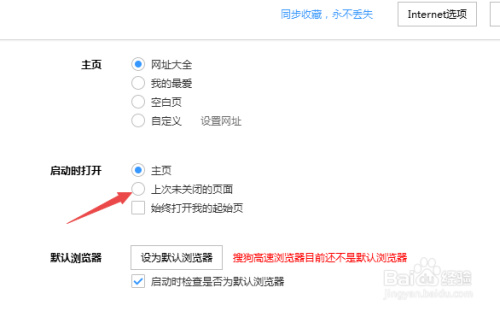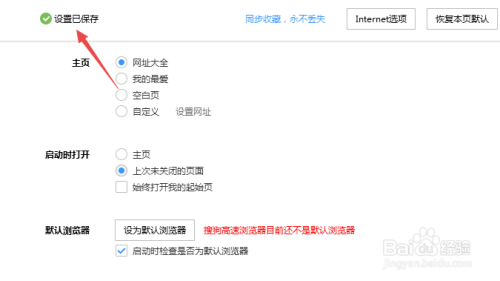 6、会显示设置已保留,这样便开启了启动时打开前次未封闭的页面。