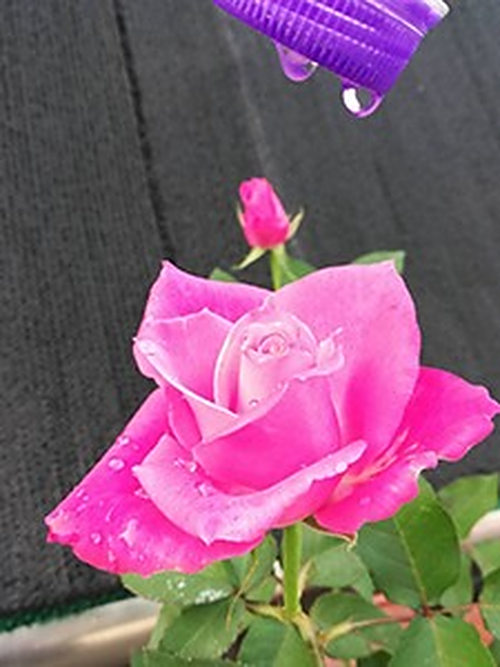 接着,用手吊水洒在花上或用水瓶洒水在花上。