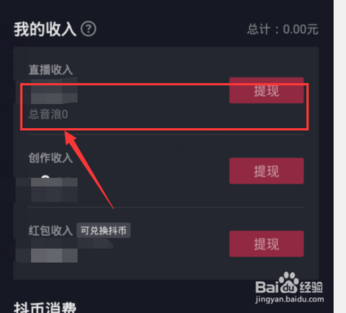 第四:在钱包我的收入下面查看本身的【总音浪数】。