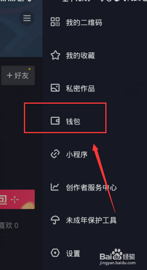 第三:在弹出的选项对话框中选择【钱包】选项进入钱包。