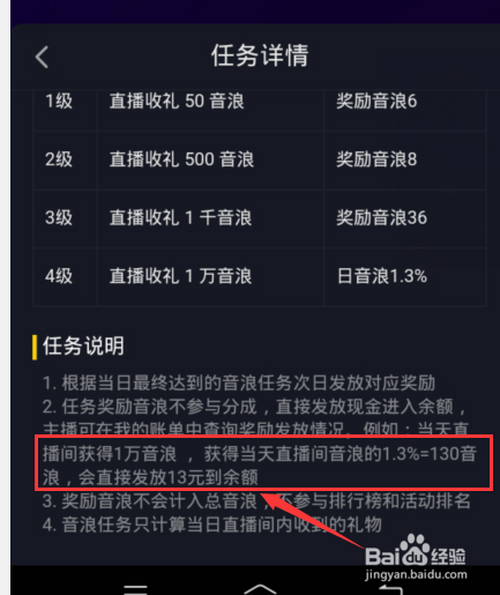 第六:抖音130音浪可以兑换13元比例为10比1完当作操作。