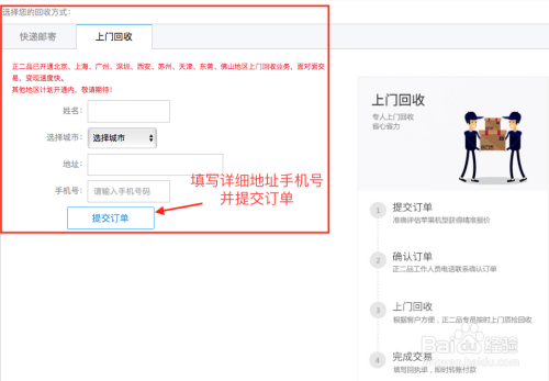 选择上门收受接管:填写具体上门地址,期待工作人员联系并上门收受接管