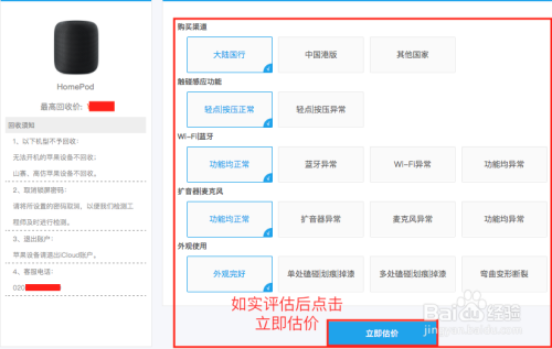 3、按照本身的HomePod 版本及外不雅利用环境如实勾选,避免收受接管时有价钱误差