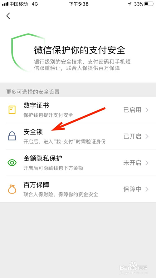 6. 点击“平安锁”按钮,按照提醒操作即可。