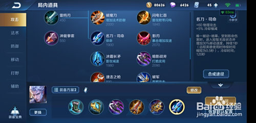 第三件装备,暗影战斧,增添物攻、血量、物理穿透。凯皇焦点装备之一。