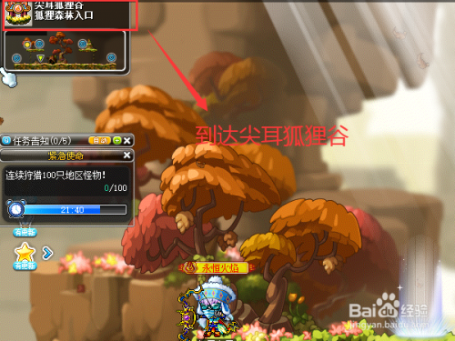 要去尖耳狐狸村我们要先去万神殿,移动我们的人物到金银岛六叉路口。