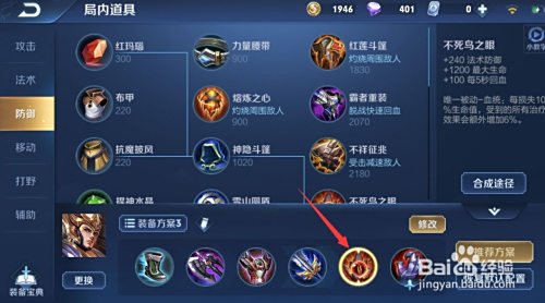 然后,第五件选择“不死鸟之眼”,共同大招提高回血