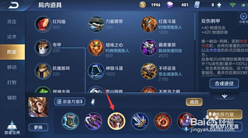 然后,第三件出“反伤刺甲”,提高本身的物抗