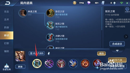 接下来,第一件装备选择“抵当之靴”,供给移速和韧性