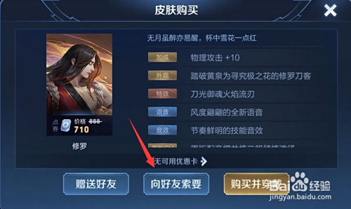 然后选中修罗皮肤,点击“采办”