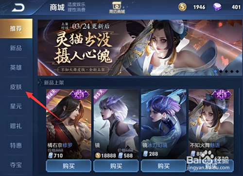 接下来,点击“皮肤”