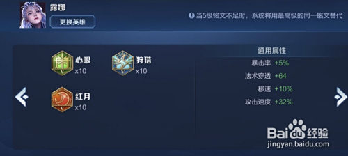 起首,铭文选择:心眼*10,打猎*10,红月*10,快速打出被动