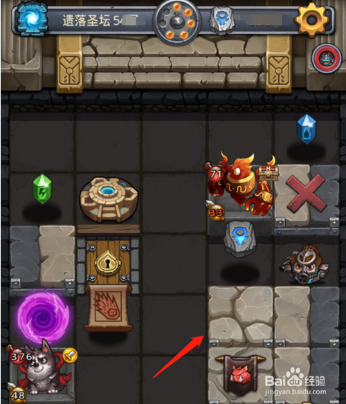 找到头盔后,我们就可以继续进步,若是没找到可能需要退出后从头进入,再来找。进入50层之后,我们需要将一层中的所有地板掀开,铁血冈布奥可能就在某一块地板后面。如图所示