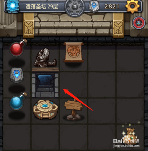 5、找到头盔后,我们就可以继续进步,若是没找到可能需要退出后从头进入,再来找。进入50层之后,我们需要将一层中的所有地板掀开,铁血冈布奥可能就在某一块地板后面。