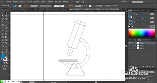 利用矩形画出显微镜的本家儿体,再用圆形切割出显微镜的右侧的圆弧路径,再用圆形东西与钢笔画出显微镜的支架路径。