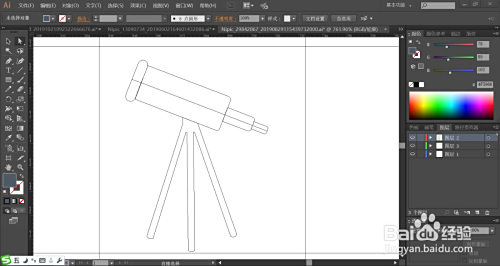 利用矩形东西画出千里镜的本家儿体圆筒布局,再用钢笔画出千里镜的支架布局件的路径。
