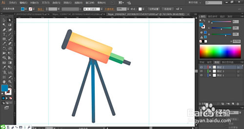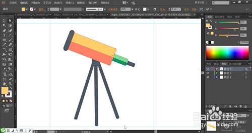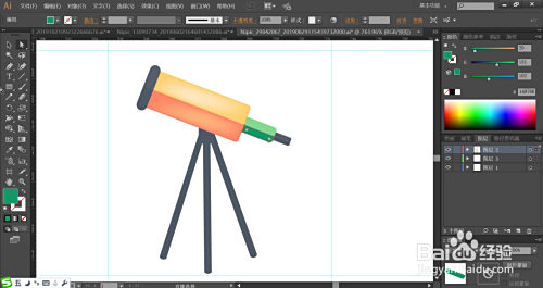 利用网格东西点击一下千里镜的本家儿体的桔黄色路径与下方的支架路径让其呈现渐变色的结果,完当作千里镜图标设计。