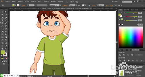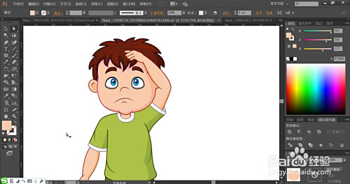 小孩的眼晴用蓝色与浅蓝色搭配白色填充,眉毛用红棕色填充。手臂用粉色填充,衣服的领口与袖子做出白边的结果。