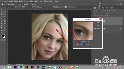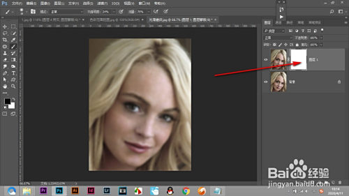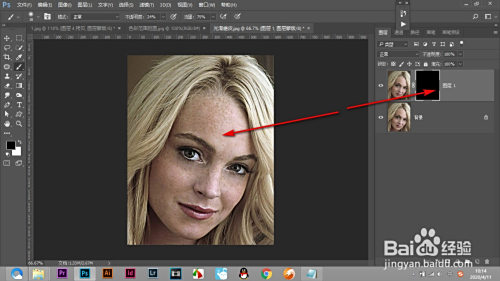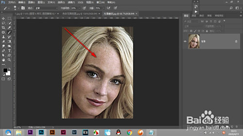 1.打开一张人物图片,看到有良多的色斑,需要进行磨皮操作。