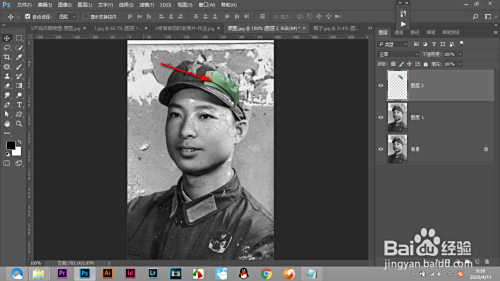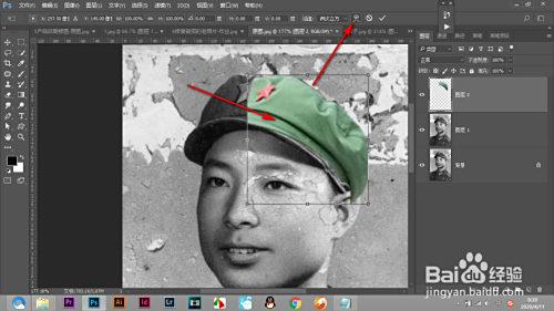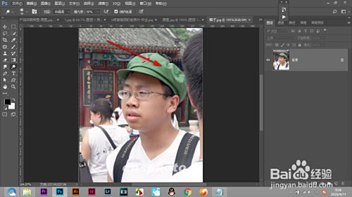 3.将抠好的帽子放在人物上面。