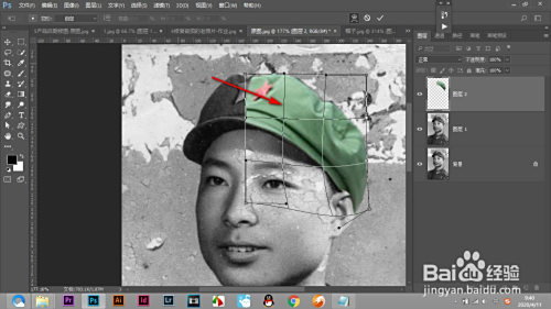 4.利用自由变换简单的调整巨细,然后点击变形按钮。