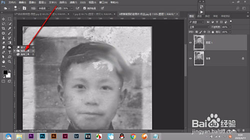 4.然后发现颜色比力白,点击右侧的东西栏。