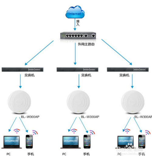 同样是在前期收集布线的根本上,直接摆设就可以了。多台无线路由器级联,房间会有多个Wifi旌旗灯号,旌旗灯号欠好时需要往返切换。