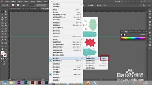 1.打开AI软件,然后从标尺中拖拽出两条参考线。