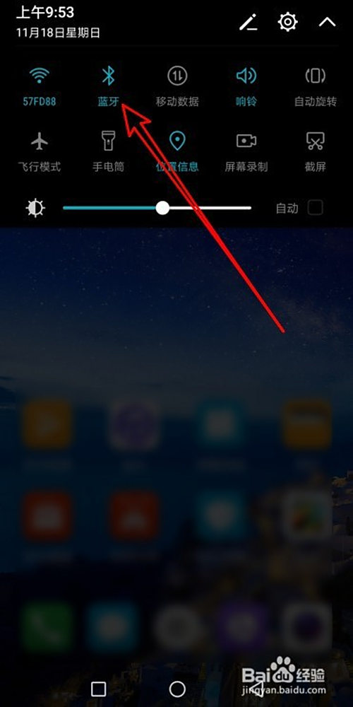 然后再打开快捷东西栏,找到蓝牙的图标。