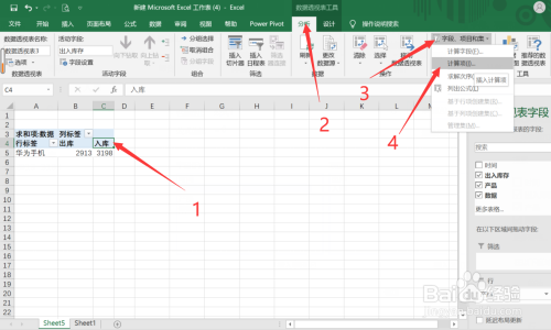 第五步:点击表格数据【入库】,再点击【阐发】下的【字段、项目和集】,选择【计较项】
