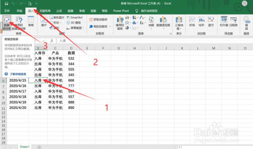 第一步:随便点击一个表格数据,在【插入】选项卡中点击【数据透视表】