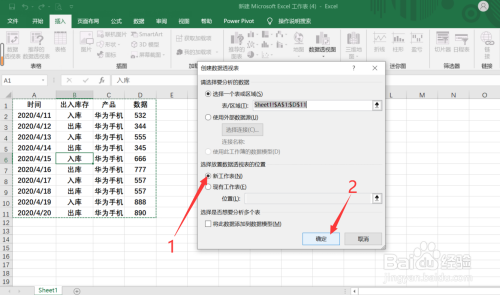 第二步:选择【新工作表】,点击【确定】
