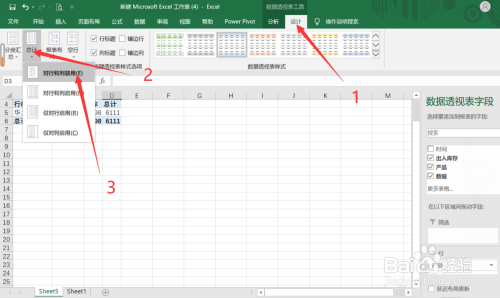 第四步:点击【设计】下的【总计】下拉箭头,选择【对行和列禁用】