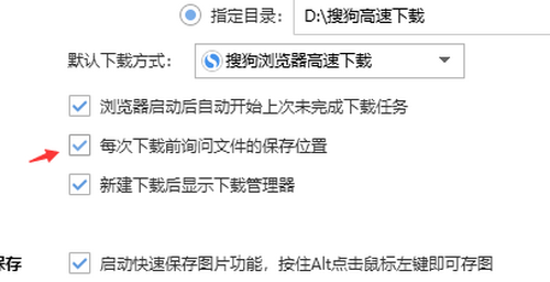 开启每次下载前扣问文件的保留位置选项,如图所示。