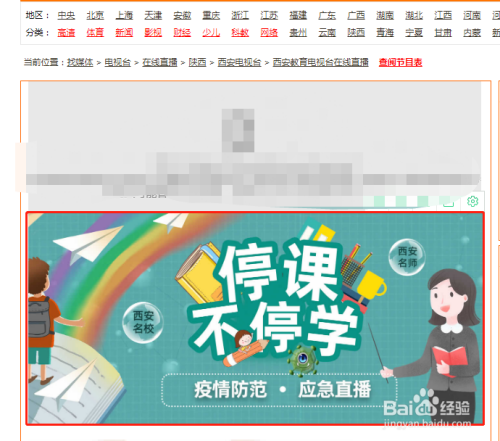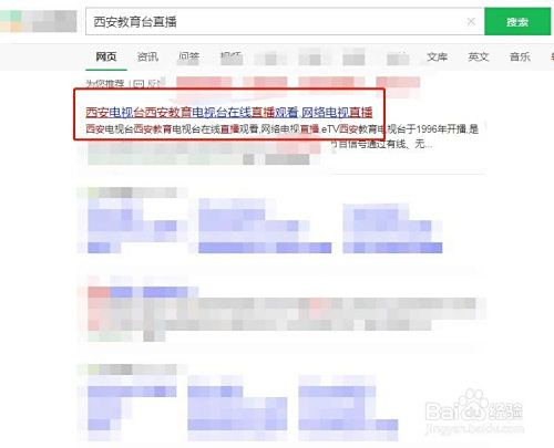 在搜刮框中输入西安教育台直播并点击搜刮 ;
