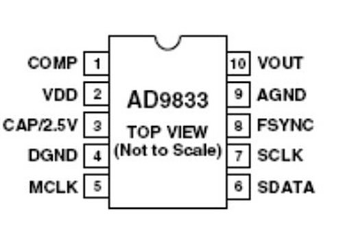 AD9833无需外接元件,输出频率和相位都可经由过程软件编程,易于调节,频率寄放器是28位的,本家儿频时钟为25MHz时,精度为0.1Hz,本家儿频时钟为1MHz时,精度可以达到0.004Hz。此内容可拜见ad9833 datesheet