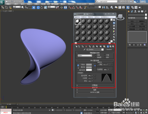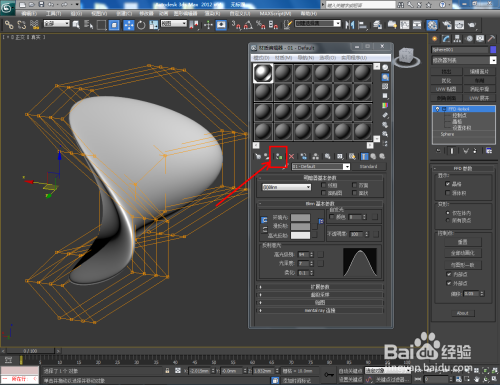 点击【材质编纂器】,按图示设置一个金属材质球并附加给模子,这样我们的3D异形弧形面模子就建造完当作了。