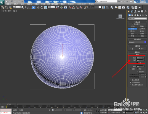 打开3Dmax软件,点击【建立】-【几何体】-【球体】,按图示参数绘制一个球体模子。选中球体模子,按图示对球体模子进行缩放操作;