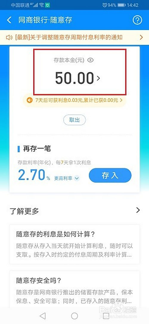 第三步在随意存界面,点击存条目本金,如下图所示: