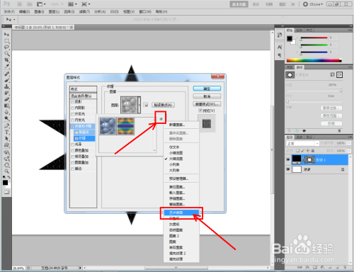 点击图案选项栏中的小三角-【艺术结果】,将艺术结果追加到选项栏中;