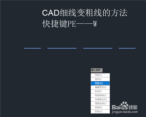 我们选摘要酿成粗线的线,输入快捷键PE。