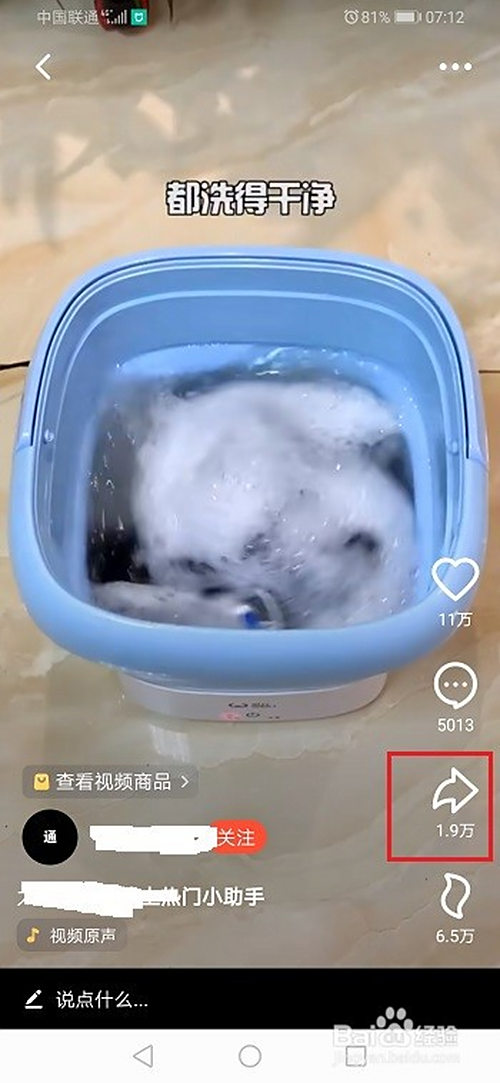 第一步打开抖音火山版,找到要合拍的视频,点击分享图标,如下图所示: