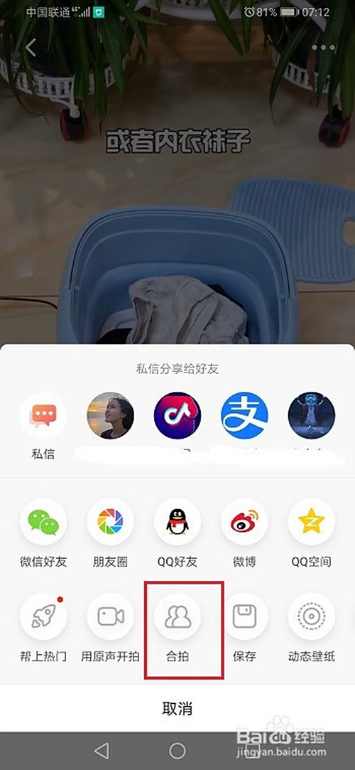 第二步点击分享图标之后,选择合拍,如下图所示: