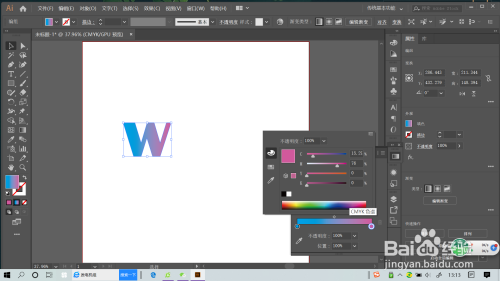 选择右栏的渐变东西,双击渐变滑块,会弹出一个画板,选择“颜色”,滑动滑块选择您喜好的渐变颜色。