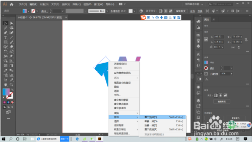将朋分出来的小部门按住shift进行扭转,调整到合适的位置,右击---摆列---置于顶层。