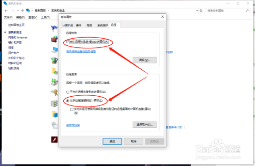 勾选【许可长途协助毗连这台计较机】和【许可长途毗连到此计较机】