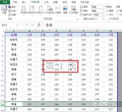 这时在默认的第一页中,选中一行作为分页打印的鸿沟,具体如图所示:
